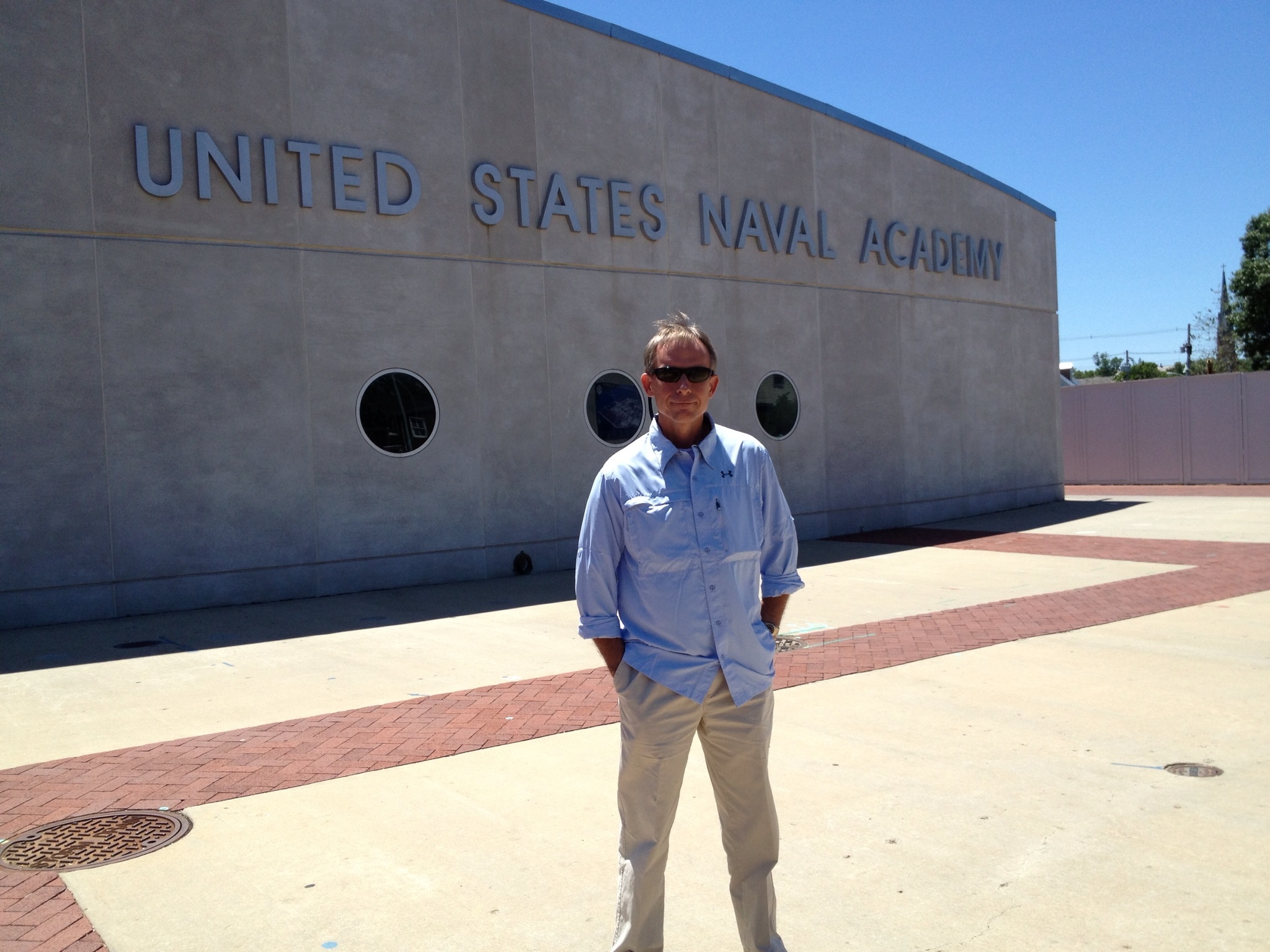Sunday was a very cool “final day” for us. We had been wanting to attend services at the Naval Academy Chapel for three years. Okay, let me clarify, because I know what some of you are thinking who know us both. You’re thinking, “Who’s WE? Mary Marie wanted to attend services and Frank agreed in order to be a good sport.” I’ll have you know, that is not the case. Frank was the one who suggested it from the beginning and I always have an interest in visiting a new church so was very happy to go. So if you were one of the ones who thought it was purely me driving this outing, take it back! But to be clearer yet, when I was looking up the service schedule, I asked, “Do you want to go to the Catholic service or the Protestant Service?” and he replied with, “Oh, I don’t care. I just want to see the building.” And that’s the rest of the story. It was a great service, lots of families with their new graduates, a GREAT speaker and wonderful music. (We can’t help it . . . we critiqued the pastor’s public speaking skills. You just can’t get away from some things.) A beautiful setting, indeed.