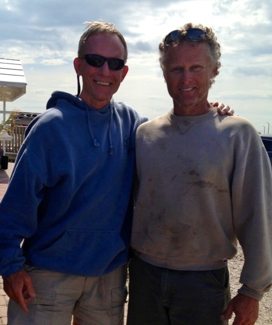 Later that afternoon we tracked down a good friend and crew member from Frank’s past fishing days. Although they don’t keep in touch on a very regular basis, when they saw each other, it was like two brothers greeting each other after years of separation . . . couldn’t help but bring a tear to your eye. (Frank didn’t take his sunglasses off for several minutes … ) Blair has continued in the fishing business over the years and has gradually expanded his operations with his children to include a crab shack and kayak rentals in Cape May Harbor . . . but we got a taste of their latest acquisition of the Two Mile Landing Marina and Restaurant as Blair and his wife hosted us for dinner at the newly renovated restaurant. If you’re looking for a great slip, a great meal and/or a great sunset, go to Two Mile Landing Marina and Crab House. We had a great dinner with the family! Now, it was a very windy day and a little too sporting for the dinghy to make it over to Two Mile Landing, so Blair picked us up at the Eleanor Q on his crab boat!! That’s the coolest water taxi you’ll ever get. I was having too much fun to remember to take a picture. We came back after sunset with lightning in the sky and no running lights . . . that’s how Blair and Frank roll. I have to tell you – after spending part of the day with Blair, I understand more about Frank . . . they are cut from the same cloth. Pretty enlightening. By the way, that’s the dinner where we saw another former fisherman who remembered Frank as the guy who sank the Marjorie Snow. Blair was on the Marjorie Snow with Frank that day. Don’t get scared . . . Captain Quigley ran it aground first and Blair swam (a very short distance – probably more like “waded”) to shore to get help. It didn’t sink until after the tide came back up . . . no one was ever in danger. But this did all take place (35ish years ago) in plain view of all the other fishing boats leaving the dock, and thus the reason why everyone knows about it. And young Captain Quigley DID manage to get the boat upright and cleaned out and operational again and DID NOT lose his job. And that’s the short version of the story of the Marjorie Snow. It had to be told. And Blair was there.