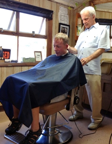 Onto the less somber part of the visit . . . one of the goals of the day was to find a barber shop. We are the proud owners of some pretty nice clippers, but I am trying to postpone having to use them until absolutely necessary! We saw a classic looking barber shop with a sign that said “Drive In.” That counts for bicycles, too – right? So we did.