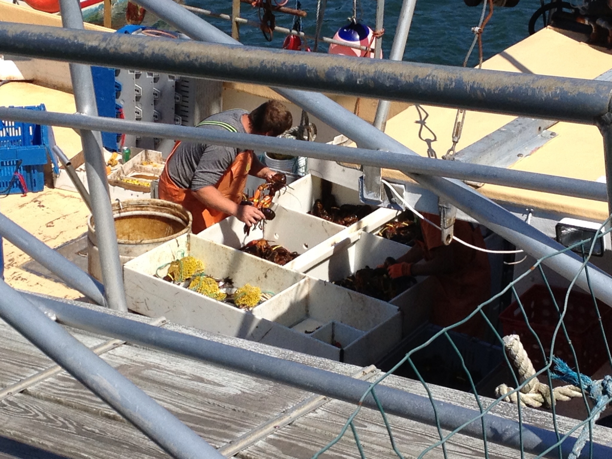 We enjoyed a nice walk into to town. Boothbay is a tourist destination, but a relatively laid back, civilized one. We found a place to have an incredibly cheap lobster dinner a little outside of town, and then walked back to the main harbor the next morning. (The next day we checked the tides and had a little better dinghy parking strategy!) It is hard not to feel for the lobstermen/women. There is a glut of lobster and they are getting less than 2.50/pound. We had a complete lobster dinner with two – that’s TWO – 1 1/2 pound lobsters for about $18 per person. We will do our best to support the industry while we’re here.