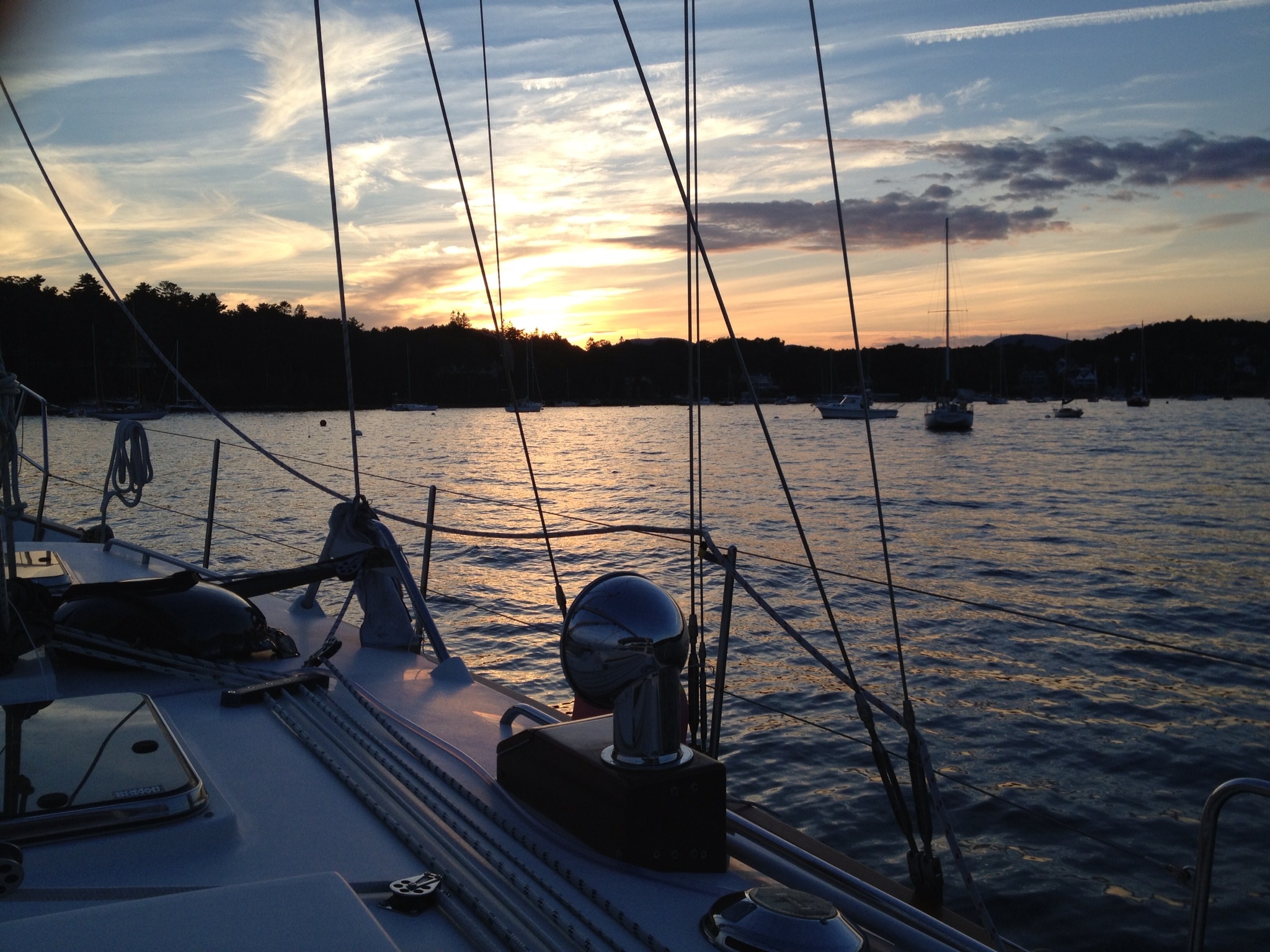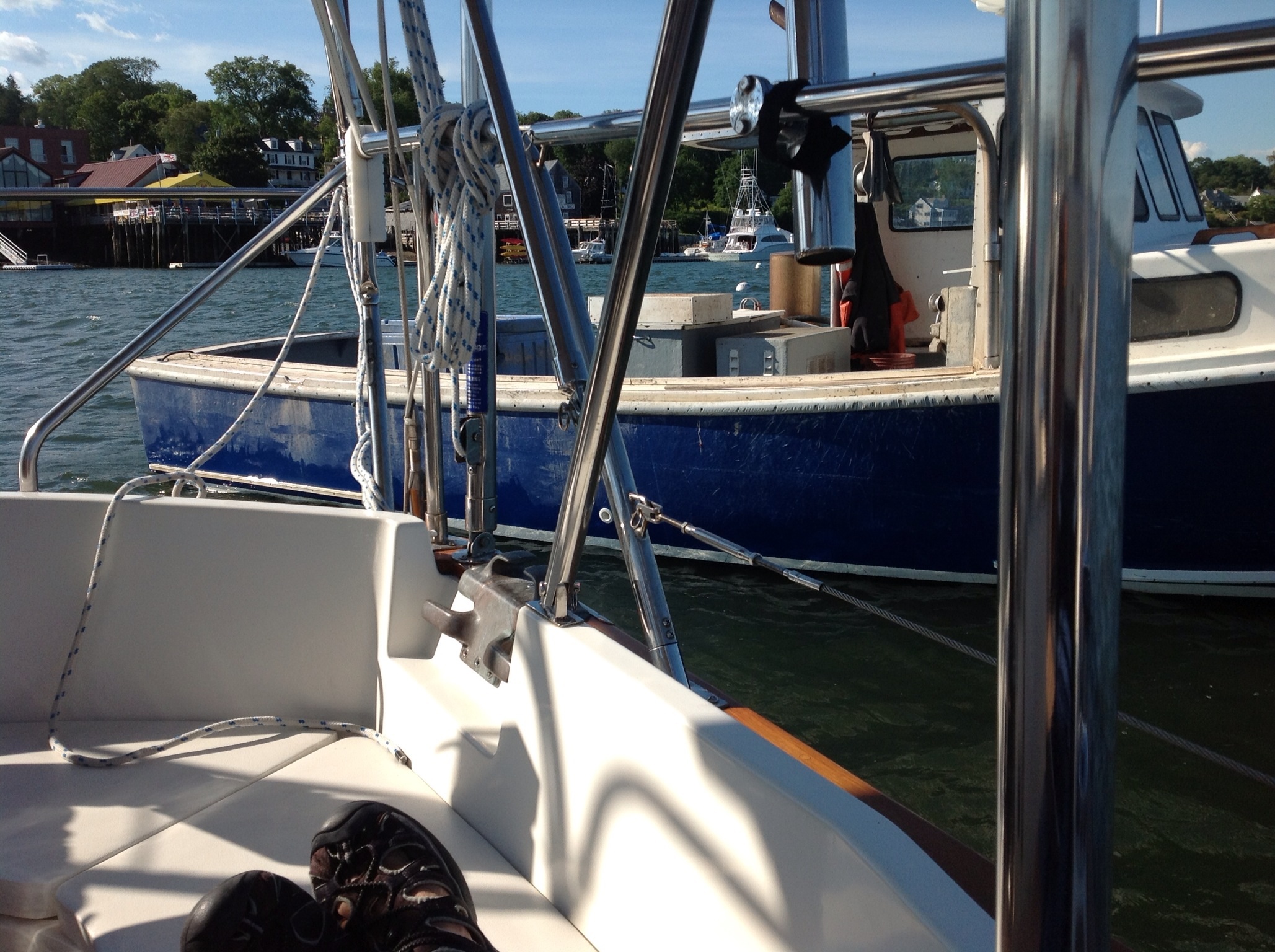 We left Portland on a beautiful day with some nice wind in our sails. We set off that morning thinking we were headed to a place called “The Basin.” That was until we realized that a) we were doing about 7 knots (that’s good), and b) we were actually sailing instead of having to motor sail or motor, something we haven’t gotten to do much of lately and we like it! So we decided to take advantage of the good conditions and keep on going to Boothbay Harbor area. And so we did. The great sailing didn’t last the whole day, but it lasted for more than half the trip which turned out to be about a 6 hour trip.