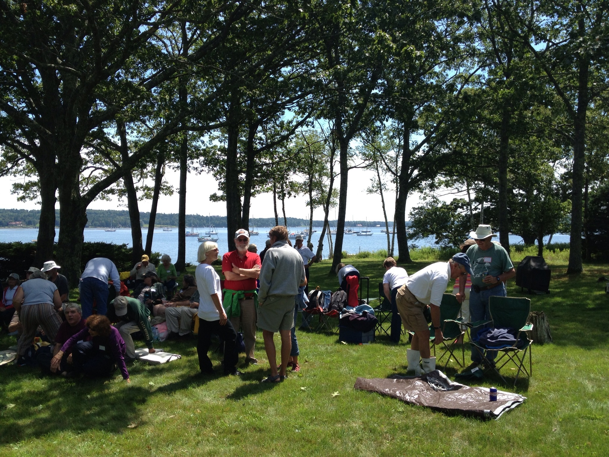The next day was a gathering at the cottage of one of the members who has now hosted this shindig for 23 years! The weather turned beautiful for exactly the portion of the day that we were gathered for a covered dish lunch and a program in the afternoon. The speakers shared information about Maine, its economy, and the state of the islands themselves. (Fun fact: there are 3,166 islands in the Maine registry! I know! Who knew?) We met great people and got lots of helpful information from those who have been sailing our same route for many years, some for more than a decade. I especially laughed at a comment one couple made that we were talking to. They said, “Yeah, we can tell you haven’t been cruising that long – you look too clean . . . after ten years you’ll look like us!!” I didn’t think they looked all that bad, but he did have a rather long and curly mustache bordering on handlebar. Wonder if Frank will give up shaving somewhere along the way. Doubt it. Many people were especially helpful in prepping us for traveling through the Bahamas this winter. All in all, a good gathering.